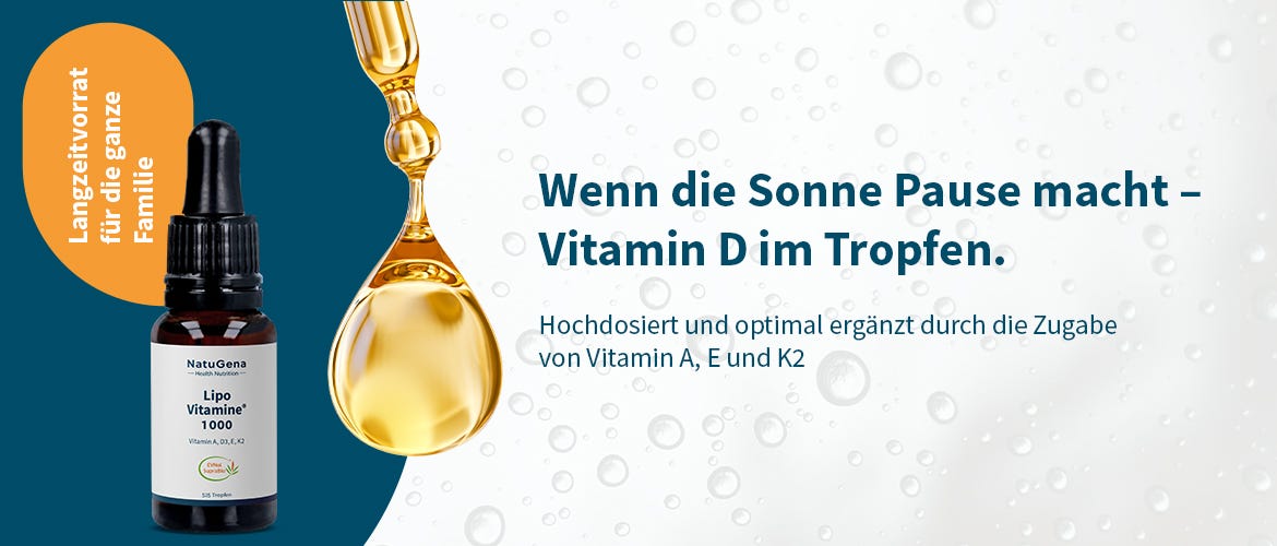 Dieses hochwertige Öl liefert z.B. pro Tropfen 5000 IE Vitamin D, kombiniert mit den fettlöslichen Vitaminen E, K2 und A.